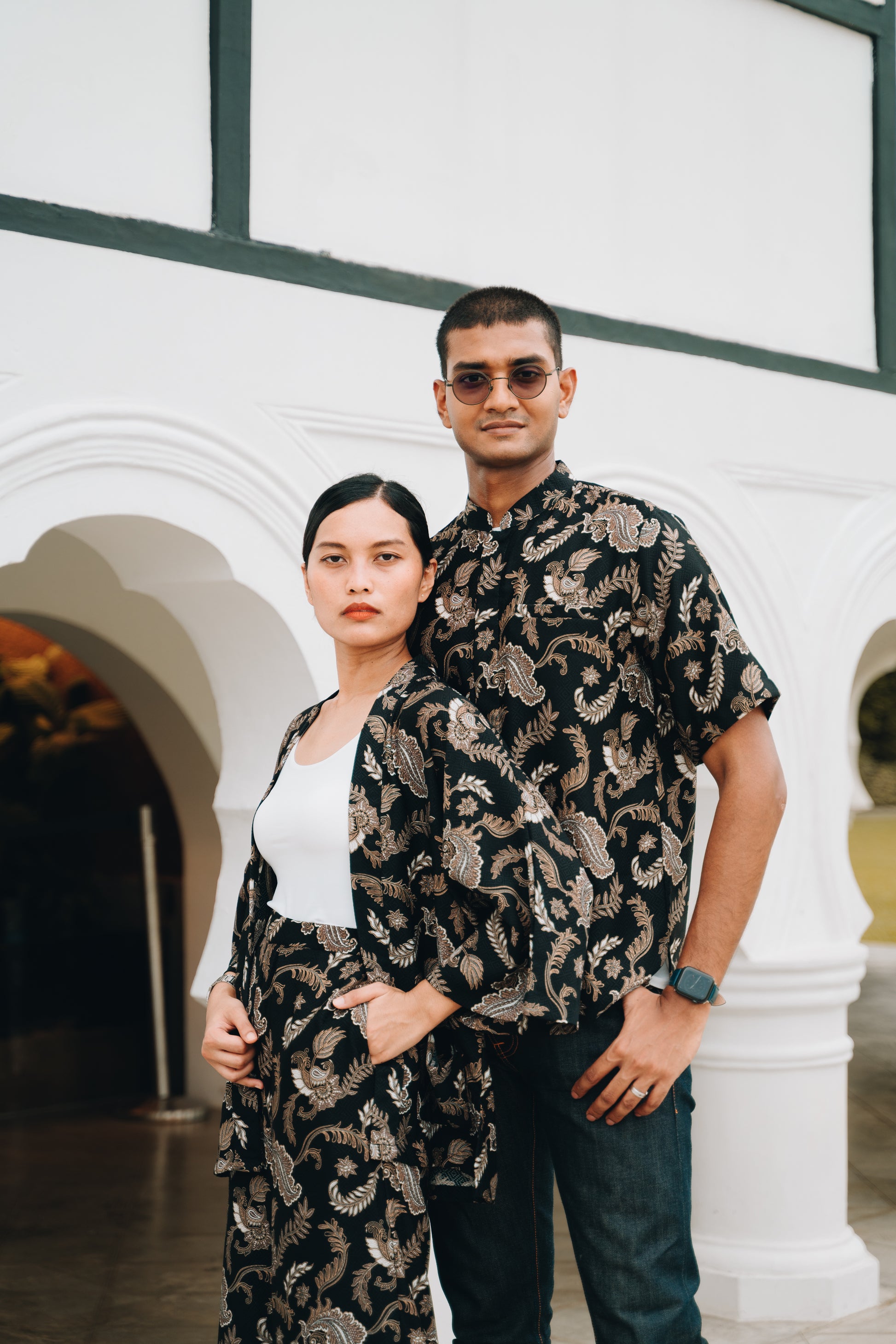 The Arya kimono is an oversized fitting outerwear which features 2 front pockets. This elegant black kimono features a phoenix batik print in white and brown, which presents a more traditional vibe.Pair it with the Arya Wide-Legged pants for a co-ord look.