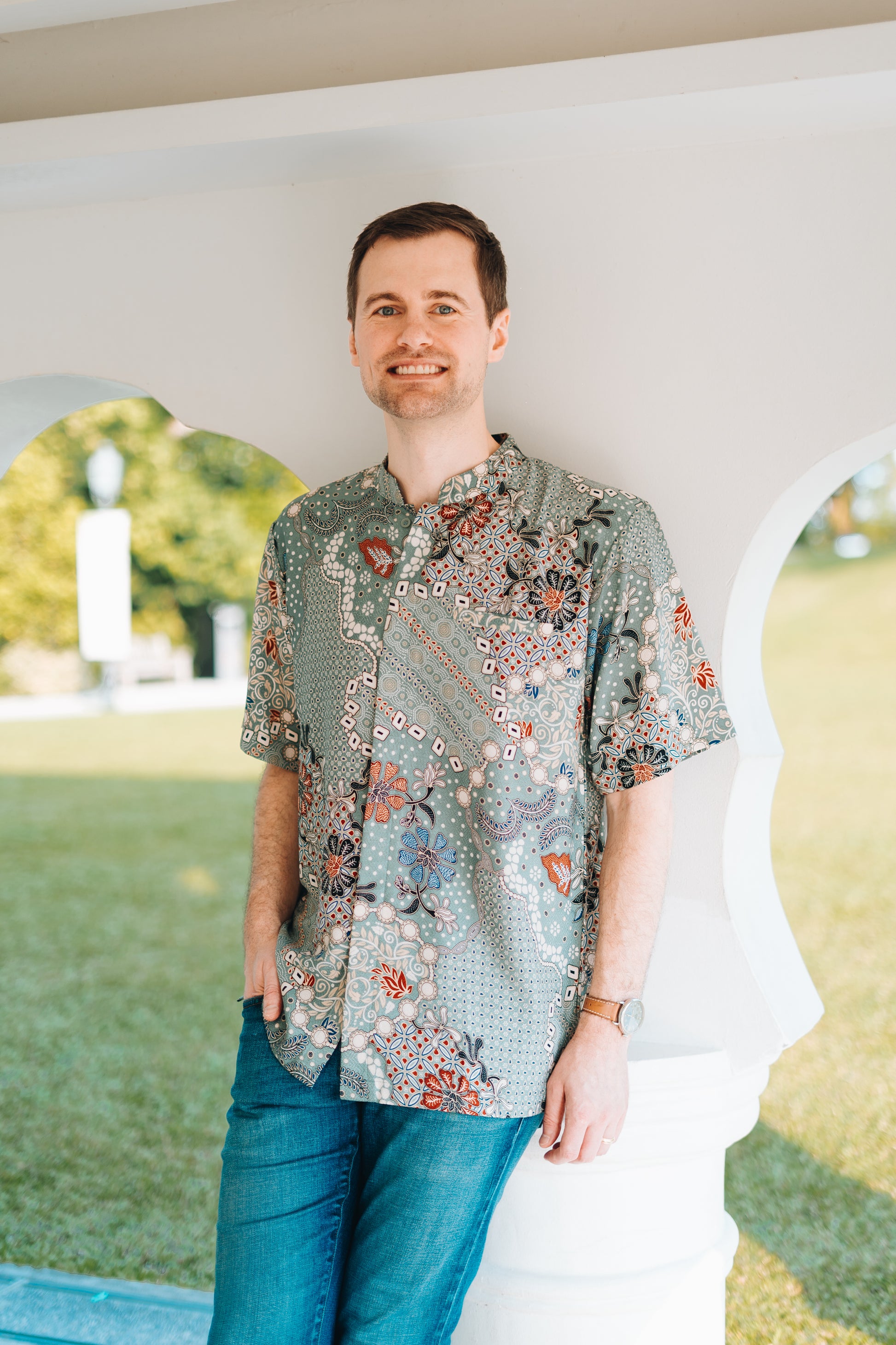 The print on the Kasih shirt is a blend of floral and miniature geometric shapes, which has the likes of the Sekar Jagad print. The regular cut shirt features a mandarin collar, full down buttons, along with a front pocket. This print comes in 2 colours, black and wintergreen.