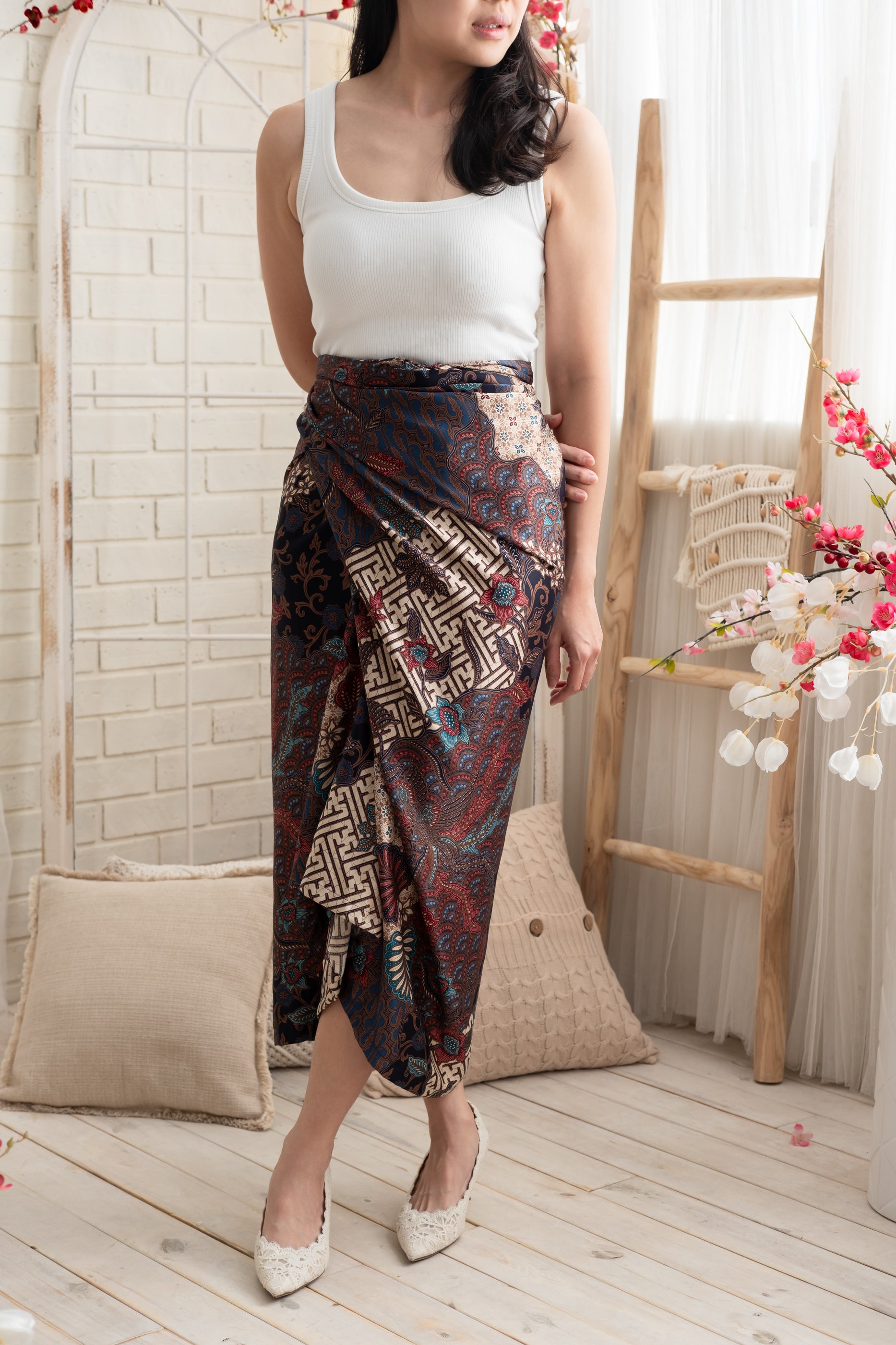 This timeless batik wrap skirt features a flattering silhouette that drapes beautifully on the body. Designed with an adjustable wrap fit for comfort and versatility, it’s an effortless piece that transitions seamlessly from festive gatherings to everyday wear.